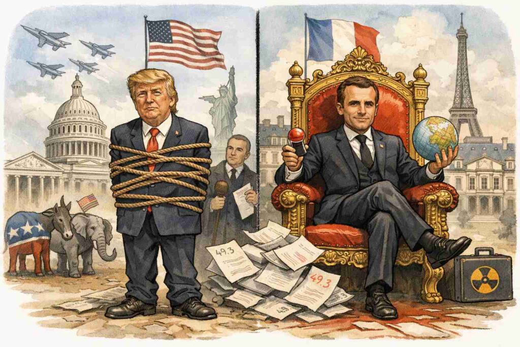 Paradoxalement, l’autorité française est plus centralisée, plus directe, et beaucoup moins contrôlée. Là où le président américain doit composer avec des contre-pouvoirs partout (médias puissants, États autonomes, Congrès rebelle), le président français évolue dans un système où les contre-pouvoirs sont soit neutralisés, soit contournés par l’architecture même de la Ve République.