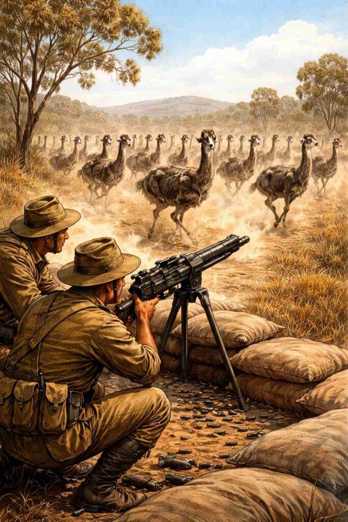 En 1932, deux soldats australiens furent envoyés contre des oiseaux nuisibles. L’affaire, devenue célèbre sous le nom de “guerre des émeus”, n’a jamais été une guerre. Elle n’était qu’une opération logistique, née d’une crise agricole et transformée par la culture populaire en mythe mondial.