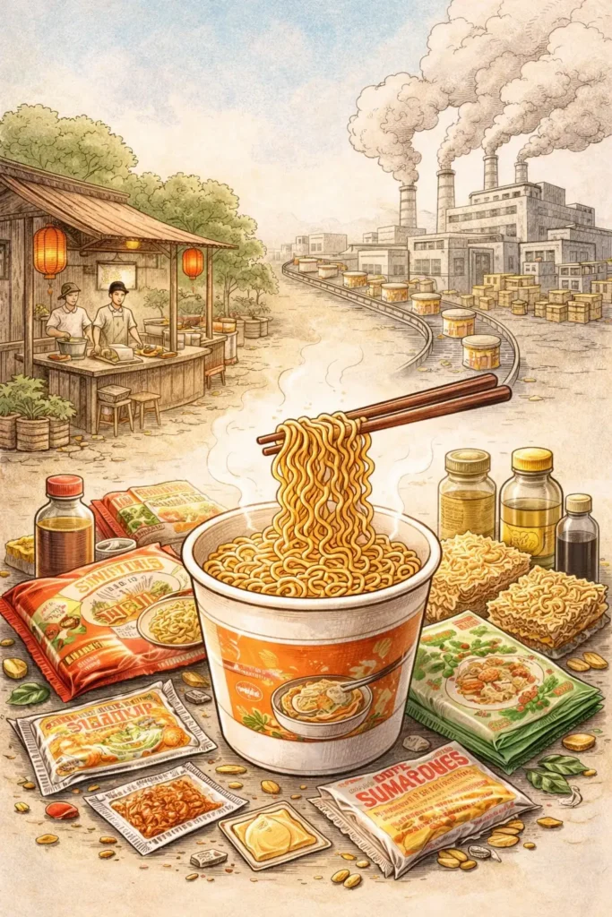 Le paradoxe est que ce modèle revient ensuite vers ses lieux d’origine. Les nouilles instantanées industrielles envahissent aussi les marchés asiatiques. Elles concurrencent les cuisines locales, standardisent les goûts, modifient les habitudes alimentaires. Les plats sont toujours là, mais la culture qui les portait s’efface progressivement.