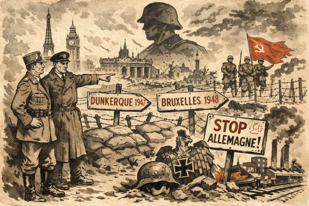 Les traités de Dunkerque et de Bruxelles s’inscrivent dans cette continuité directe. Ils sont conçus par des États encore physiquement détruits, politiquement fragiles et psychologiquement marqués par l’expérience de l’effondrement. Leur lecture comme des jalons naturels vers l’OTAN relève d’une reconstruction téléologique, dictée par l’évolution ultérieure de la guerre froide, et non par les intentions initiales des signataires.