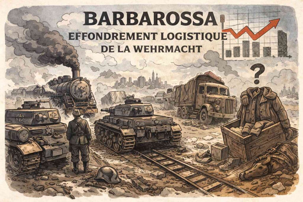 La défaite allemande à l’Est ne s’explique pas seulement par la résistance soviétique ou par le climat. Elle s’explique d’abord par l’incapacité de l’Allemagne nazie à soutenir matériellement une guerre longue sur un espace continental gigantesque. Barbarossa ne fut pas seulement une offensive trop ambitieuse : ce fut un révélateur brutal d’un système logistique mal conçu, sous-dimensionné et prisonnier de sa propre culture militaire. Quand l’offensive cesse d’être une course et devient une gestion, l’avantage change de camp.