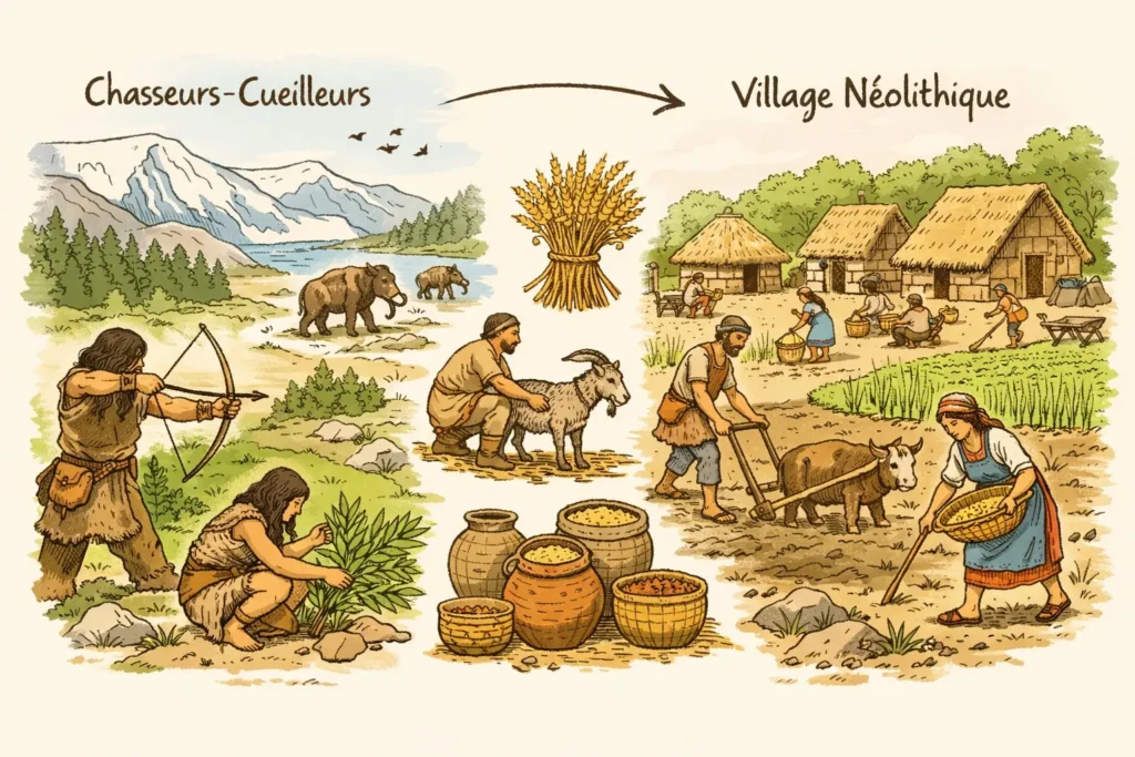 → Analyse du Néolithique comme fondement des sociétés sédentaires et des villages.