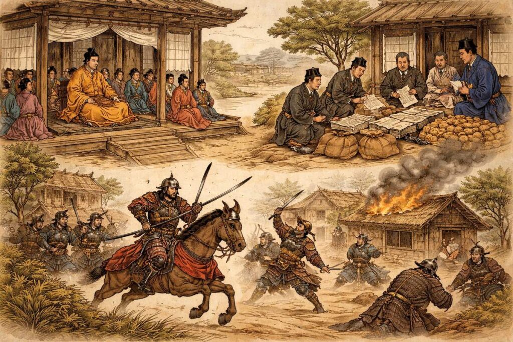C’est ici que les fonctions militaires impériales, y compris celle de shōgun, révèlent leur véritable statut : non pas des embryons de pouvoir autonome, mais des outils devenus inadaptés. Elles sont conçues pour un État capable de récupérer hommes et terres après l’usage de la force. Lorsque cette capacité disparaît, la fonction ne se transforme pas en pouvoir ; elle devient simplement inefficace.