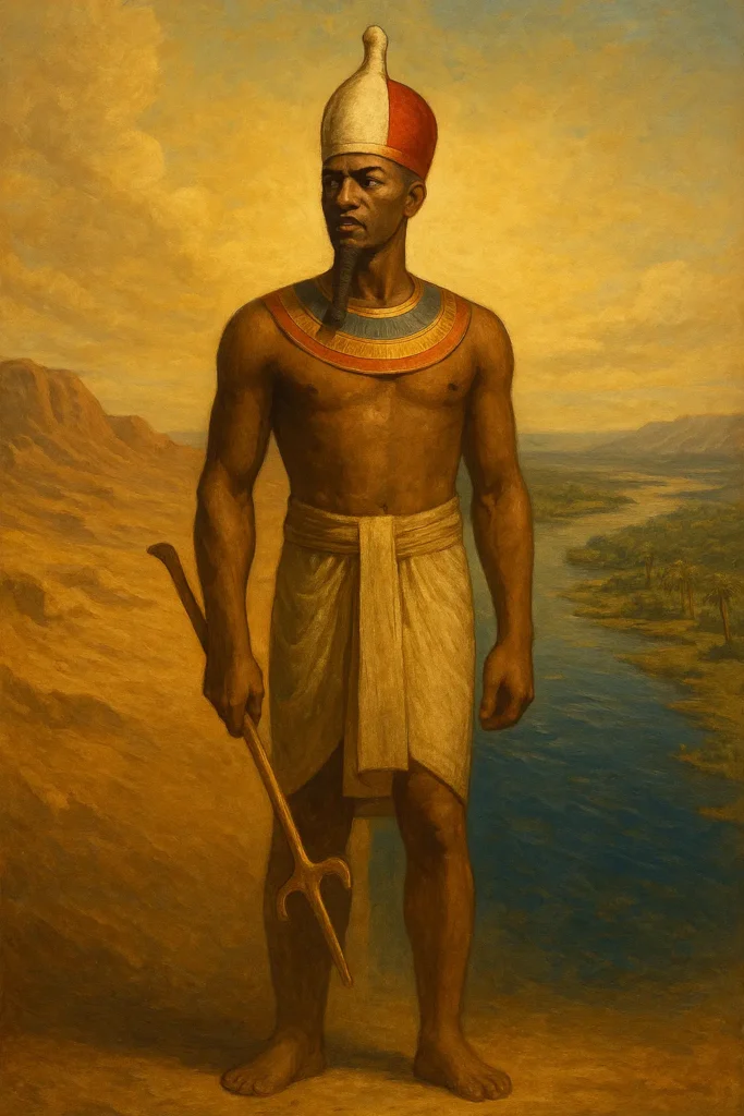 Avant les grandes dynasties, l’Égypte était divisée en deux royaumes distincts. La Haute-Égypte, au sud, s’étendait le long du Nil jusqu’à la première cataracte : un territoire de terres étroites, bordé de désert, où la vie dépendait du fleuve. La Basse-Égypte, au nord, formait le delta, ouvert sur la Méditerranée, prospère par le commerce et la fertilité. Ces deux espaces représentaient deux cultures et deux visions du monde : la Haute-Égypte symbolisait la permanence religieuse, la Basse-Égypte l’abondance et l’échange. Deux civilisations se faisaient face, parfois alliées, souvent rivales.