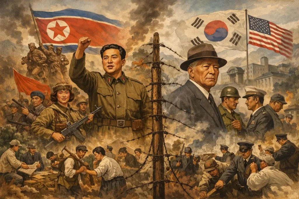 Dans ce contexte, le clivage Nord-Sud ne recoupe pas encore l’opposition idéologique telle qu’elle sera figée plus tard. Il recoupe d’abord une opposition de trajectoires historiques. Le Nord incarne, aux yeux de nombreux Coréens, la libération nationale accomplie. Le Sud incarne une libération inachevée, compromise par la continuité sociale et politique.