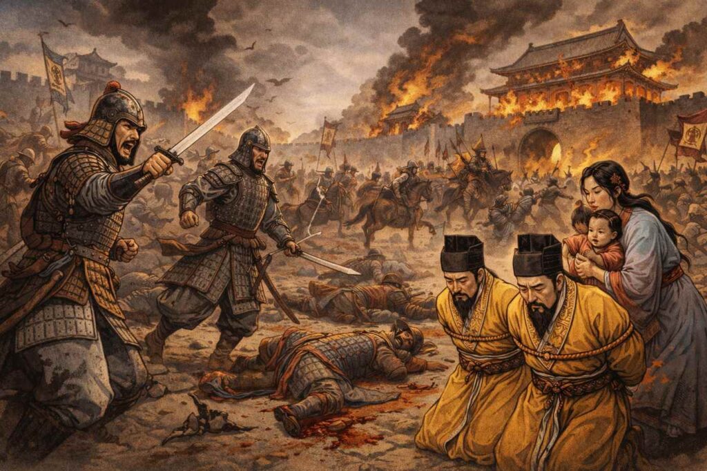 La prise de Kaifeng en 1127, connue sous le nom d’incident de Jingkang, est autant un choc symbolique qu’une défaite militaire. La capitale tombe après une résistance désorganisée, révélant l’incapacité de l’État à coordonner efficacement ses forces. Les empereurs Huizong et Qinzong sont capturés, la cour est humiliée, et l’autorité impériale s’effondre.