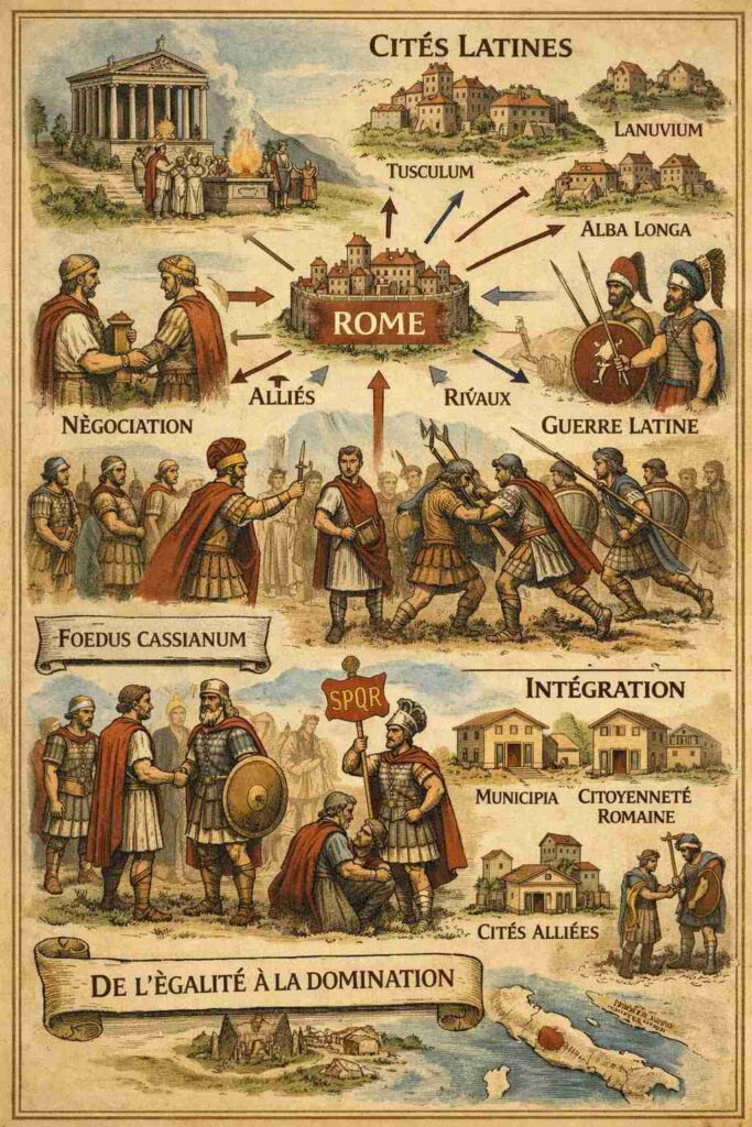 La Ligue latine n’a pas été renversée par une puissance extérieure, mais transformée de l’intérieur par une cité qui a su exploiter ses faiblesses structurelles. Rome n’a pas imposé brutalement son autorité contre un bloc uni. Elle a progressivement modifié les équilibres, en tirant parti des divisions existantes.