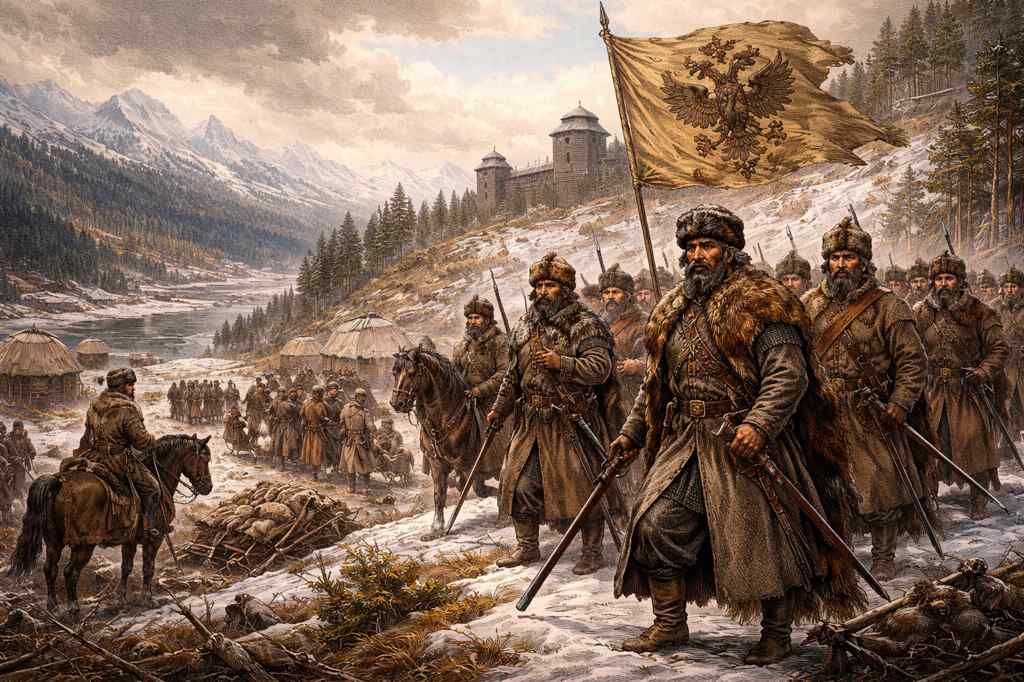 Au XVIIe siècle, cette dynamique ne ralentit pas. Elle s’accélère au contraire, au point de transformer profondément la nature de l’espace russe. En quelques décennies, les Russes atteignent le Ienisseï, puis la Léna, avant de déboucher sur le Pacifique dans les années 1630–1640.
