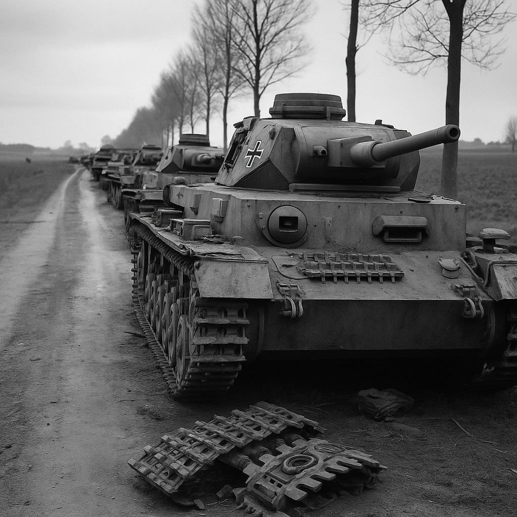 Lors de l’offensive des Ardennes, en décembre 1944, la Wehrmacht mise encore sur la surprise tactique. Mais les blindés tombent rapidement en panne sèche. Les colonnes de chars abandonnés illustrent l’échec d’une armée qui a cru qu’une percée valait plus que le carburant pour la soutenir. Le symbole est cruel : les divisions les plus redoutées s’immobilisent faute de logistique.