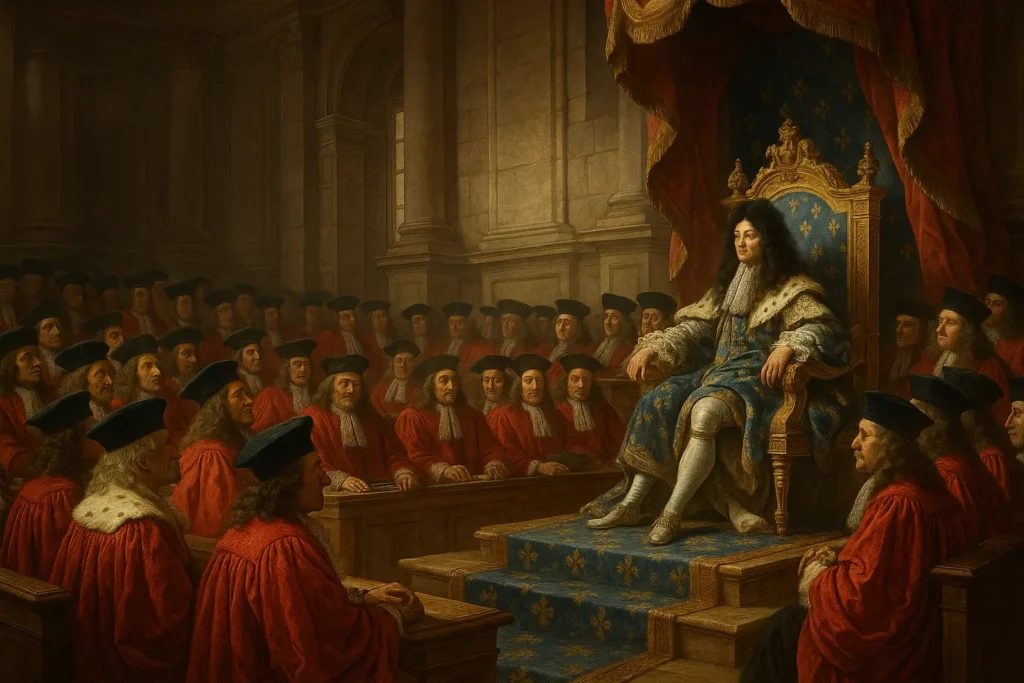 Les parlements du royaume, et en premier lieu celui de Paris, ne sont pas de simples chambres d’enregistrement. Ils défendent un principe : celui du respect du droit ancien et du “bien du royaume”. En cela, ils se considèrent comme les gardiens d’un équilibre face aux excès du pouvoir. Louis XIV le sait. Il ne cherche pas à les détruire, mais à les contenir. Lorsqu’ils s’opposent à ses décisions, il use d’une palette de réponses : admonestations, rappels à l’ordre, exils temporaires. Même dans la répression, il conserve les formes. Jamais il ne s’agit de briser le Parlement, mais de le rappeler à l’obéissance. Car Louis XIV comprend que ces institutions, aussi encombrantes soient-elles, sont indispensables à la stabilité du royaume. L’autorité du roi repose sur un corps de magistrats qui font vivre le droit et garantissent la continuité de l’État. Sans eux, la monarchie serait perçue comme arbitraire. En les domptant sans les abolir, Louis XIV préserve l’illusion d’un ordre parfait.