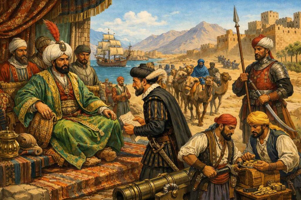 Cette résistance ne tient pas à une supériorité militaire constante, mais à une politique d’équilibre. Les souverains marocains jouent de la distance géographique, des rivalités internes ottomanes et de leur propre légitimité religieuse pour préserver leur autonomie.
