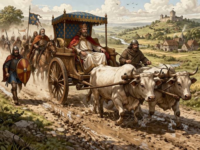 L’image est connue : des rois mérovingiens passifs, transportés dans des chariots tirés par des bœufs, incapables de gouverner, réduits à des figures décoratives. Cette représentation s’est imposée comme un cliché. Pourtant, elle repose sur une lecture biaisée des sources. Le chariot existe, mais il n’a ni le sens ni la portée qu’on lui attribue souvent. Le démystifier suppose de replacer ce détail dans son contexte politique, culturel et historiographique.
