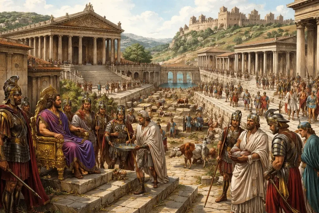 Les augures et haruspices, chargés de lire les signes divins, jouent un rôle central dès la période royale. Aucun acte politique majeur ne peut être entrepris sans validation religieuse. La fondation même de la cité, la délimitation de l’espace urbain et la consécration des lieux publics obéissent à des rites étrusques stricts. Cette sacralisation du politique devient un trait permanent de la culture romaine.