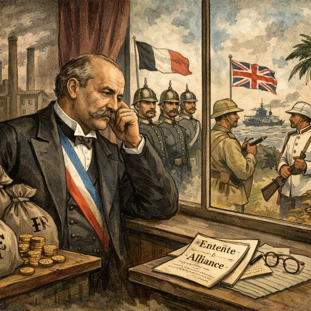Sur le plan diplomatique, la France ne reprend aucune initiative structurée. Face au Royaume-Uni, elle abandonne l’idée de rivalité frontale. Les tensions coloniales sont progressivement mises de côté, et les coopérations commerciales se développent sans véritable vision commune. L’Entente cordiale, conclue en 1904, reste une régularisation prudente, plus qu’une alliance stratégique. Elle ne comporte aucune profondeur militaire à l’origine, et n’engage pas une réflexion commune sur l’ordre mondial.