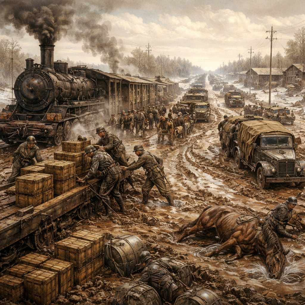 On a trop glorifié les Panzer. La vérité est plus banale : la logistique de la Wehrmacht fut son talon d’Achille. Des locomotives à bout de souffle, des routes impraticables et des uniformes coincés dans des entrepôts — voilà ce qui a brisé l’offensive allemande à l’Est.