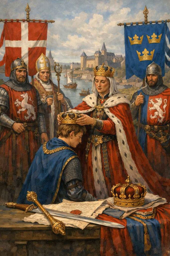 Pour comprendre Kalmar, il faut renoncer à l’idée qu’une union politique durable suppose nécessairement des institutions communes, une intégration administrative ou une adhésion populaire explicite. À la fin du XIVᵉ siècle, l’unité politique se pense d’abord par la couronne, par la capacité du souverain à maintenir des équilibres entre élites et territoires, et par l’inscription de cette unité dans des rapports de force régionaux. L’Union de Kalmar fut une tentative réelle et cohérente d’organisation de l’espace scandinave dans ce cadre-là.