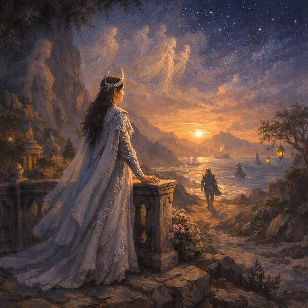 Le temps s’était étiré durant l’attente du septième Wanax, une centaine d’années mêlant création et âge d’or, où les peuples prospéraient sans heurt et où les cités s’élevaient comme des offrandes à l’horizon. Les moissons étaient pleines, les rivières dociles, les enfants nombreux. Pourtant, au cœur du Royaume du Crépuscule, en Ereb, là où les déesses se retiraient chaque soir pour confier leurs diadèmes à l’ombre, une absence pesait comme une brume persistante. Le monde allait bien — mais il n’allait pas entier.