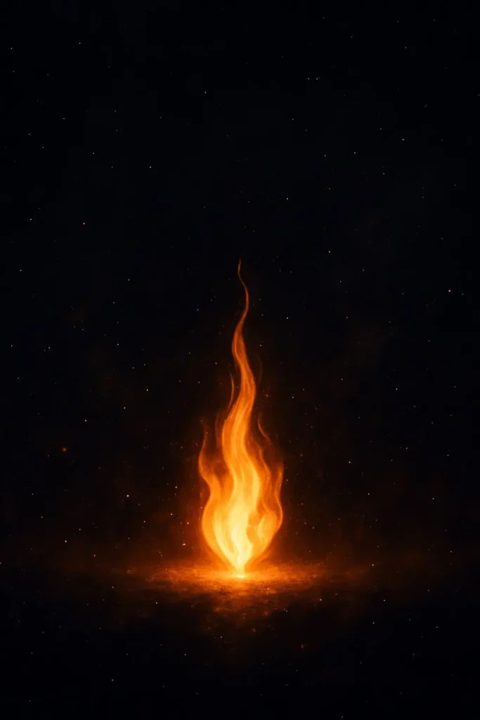 Dans ce royaume noir où l’obscurité n’était plus seulement l’absence de lumière mais la matière même du monde, dense, lourde, presque vivante dans sa négation, il advint — sans que personne ne puisse dire quand, ni comment, ni pourquoi — quelque chose d’impossible. Une lueur. Une flamme. Une palpitation minuscule au cœur de l’immobile non-être, comme si la nuit absolue s’était fissurée pour laisser passer un souffle trop fragile pour être une naissance, mais trop présent pour être un simple accident.