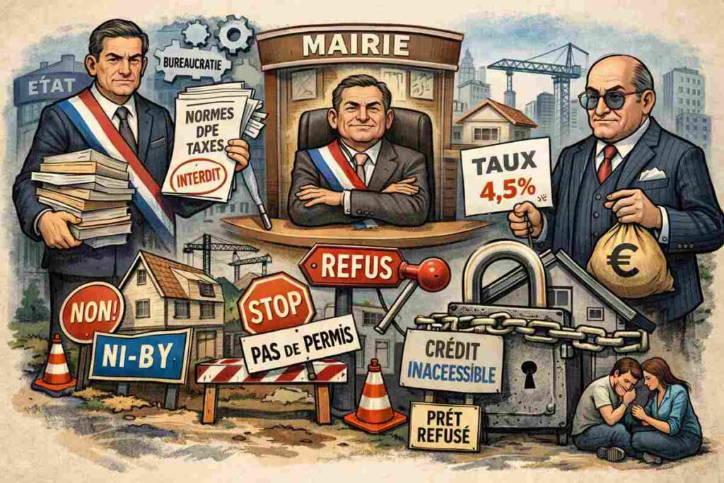 L’État multiplie les contraintes et les prélèvements, réduisant la capacité du marché à produire et à circuler. Les maires contrôlent l’accès au foncier et limitent la construction pour des raisons électorales ou budgétaires. Le système financier, sous l’effet des taux, freine les investissements.