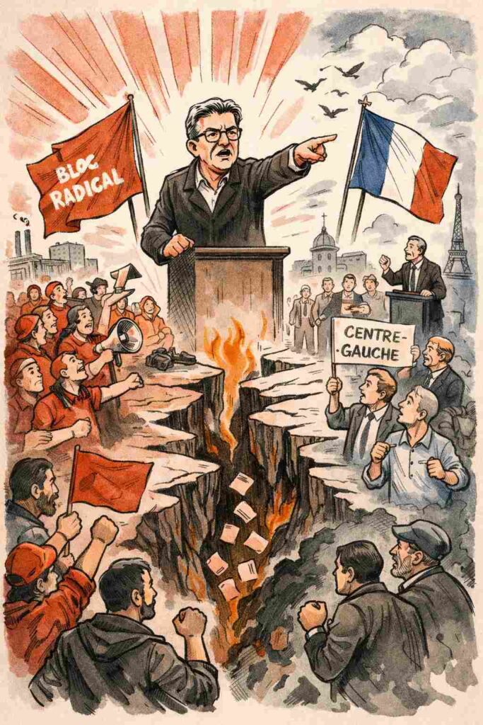 Depuis plusieurs années, Jean-Luc Mélenchon a progressivement abandonné la logique classique de coalition à gauche pour adopter une stratégie de clarification radicale. L’objectif n’est plus de rassembler du centre-gauche jusqu’à la gauche radicale, mais de structurer un affrontement frontal entre deux camps irréconciliables. Cette évolution n’est pas accidentelle : elle correspond à une lecture précise du champ politique français, où l’hégémonie interne vaut plus que l’unité fragile.