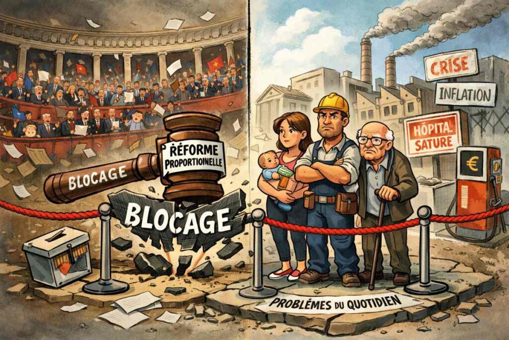 Le débat sur la proportionnelle apparaît donc hors sol, technocratique, centré sur le fonctionnement interne du système politique plutôt que sur ses résultats. Il renforce l’idée d’une classe dirigeante préoccupée par ses propres règles du jeu, incapable de hiérarchiser les urgences.