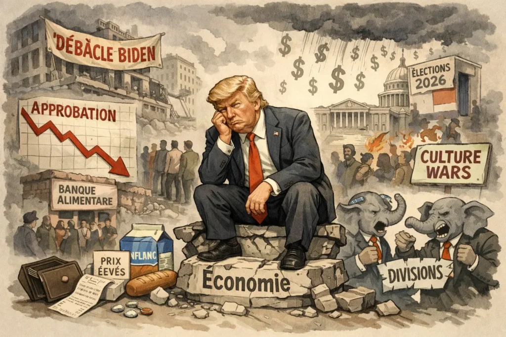 À l’orée de la séquence électorale, Trump conserve une base solide et une forte capacité de mobilisation, mais il apparaît privé de son principal levier de rassemblement. Son pouvoir demeure institutionnellement intact, mais politiquement contraint, illustrant la fragilité d’un leadership construit sur une promesse économique non réalisée.